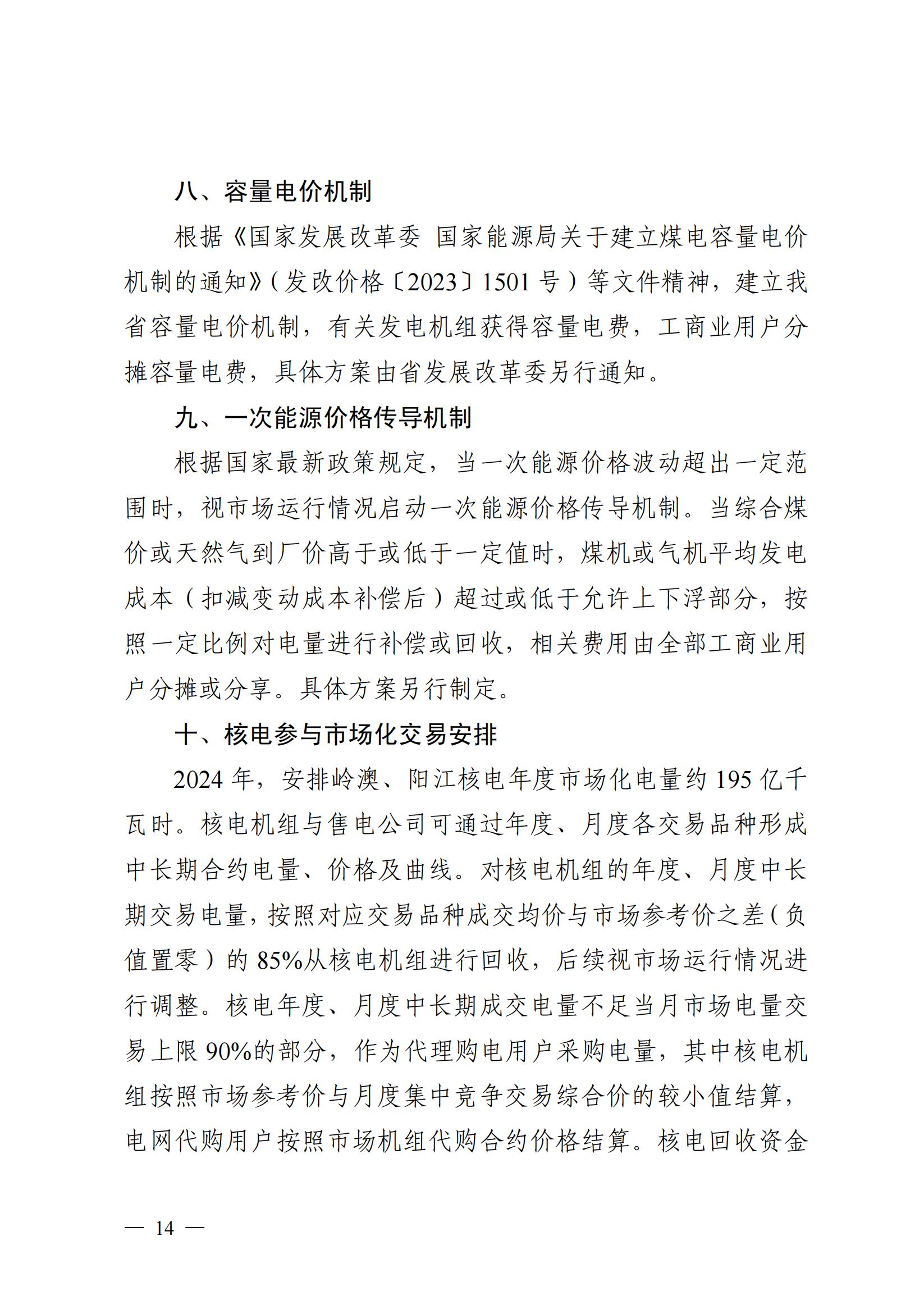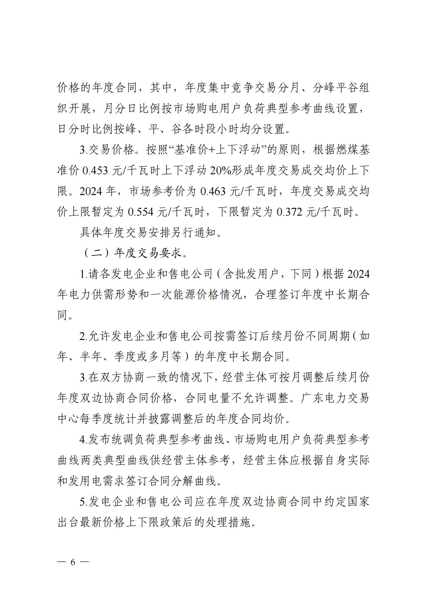 按照“基准价+上下浮动”的原则,根据燃煤基准价0.453元/千瓦时上下浮动 20%形成年度交易成交均价上下限。2024年,市场参考价为0.463元/千瓦时,年度交易成交均价上限暂定为0.554元/千瓦时,下限暂定为0.372 元/千瓦时。