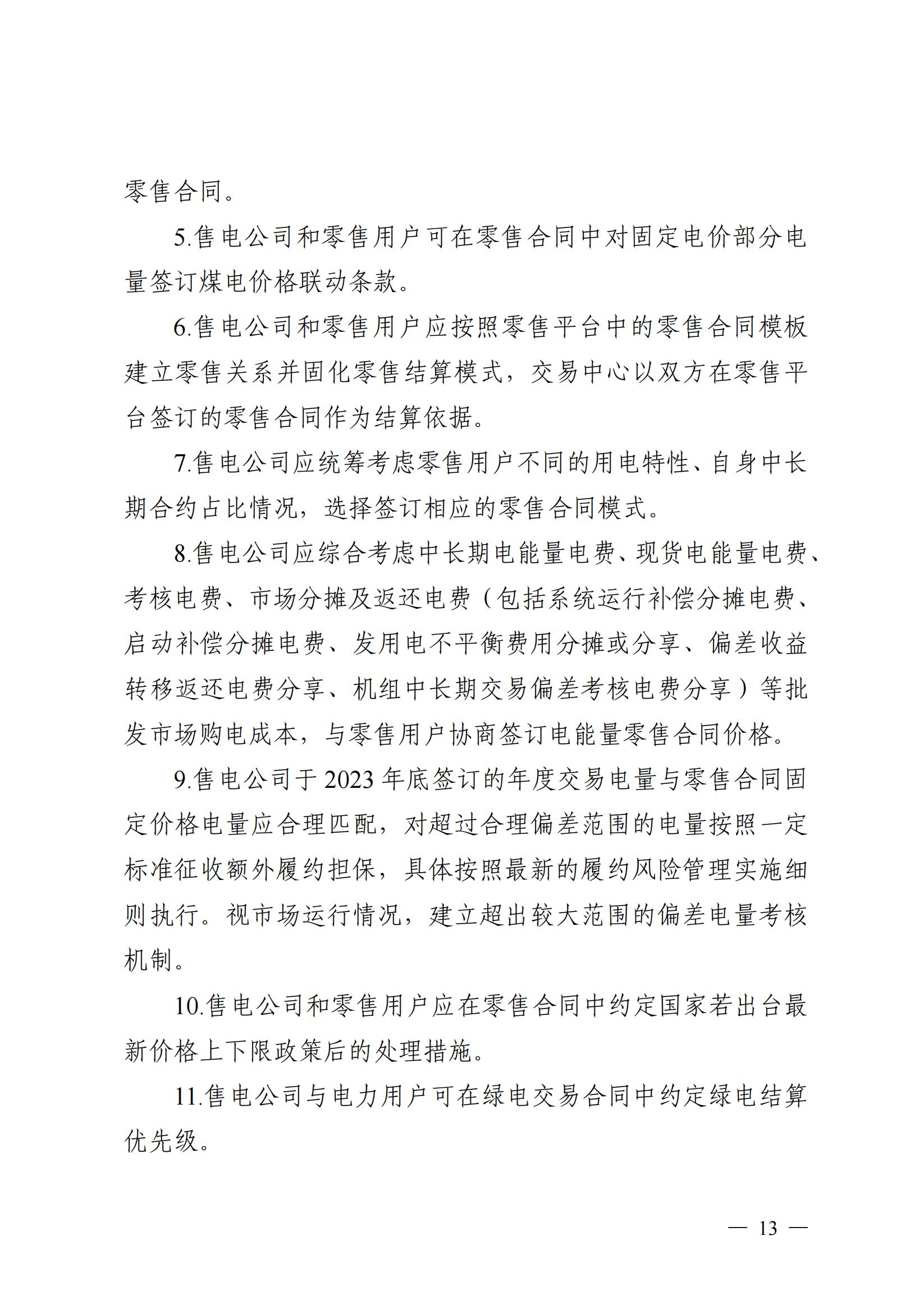 零售市场方面。经营主体按照绝对价格模式签订零售合同,同时继续应用用户侧峰谷平衡机制,加强与分时电价政策的衔接,引导用户削峰填谷。