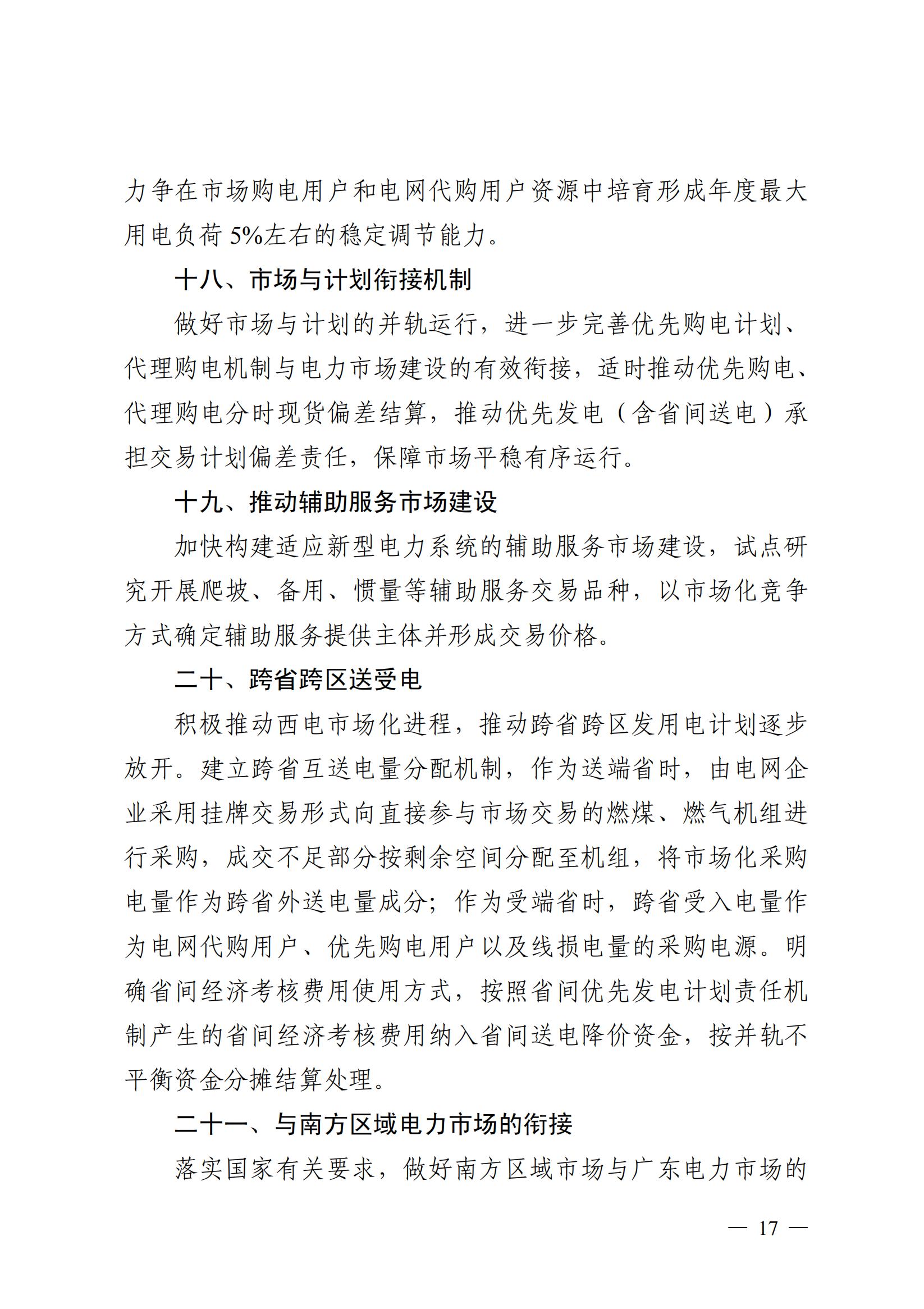 批发市场方面。经营主体按照绝对价格模式签订批发市场合同,中长期交易、现货交易形成电能量绝对价格交易结果,并继续应用机组变动成本补偿。